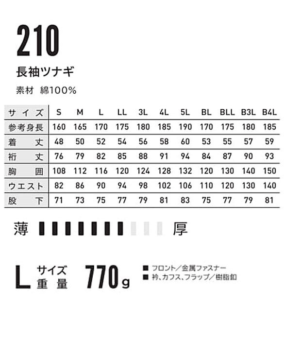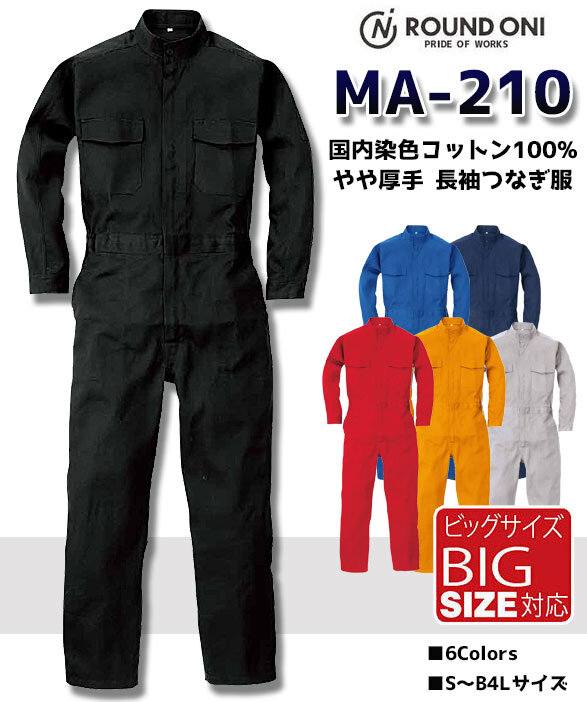 丸鬼 MA-210 綿100%長袖つなぎ服