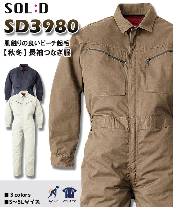 SD3980 【秋冬】表地ピーチ起毛 やや厚手の長袖ツナギ服