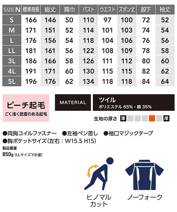 ■製品重量:850g(LLサイズ) ■胸ポケットサイズ(左右:W15.5 H15)