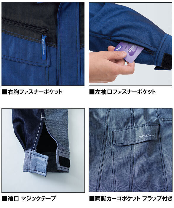 ■左袖ペン差し ■袖口・フラップ裏:マジックテープ