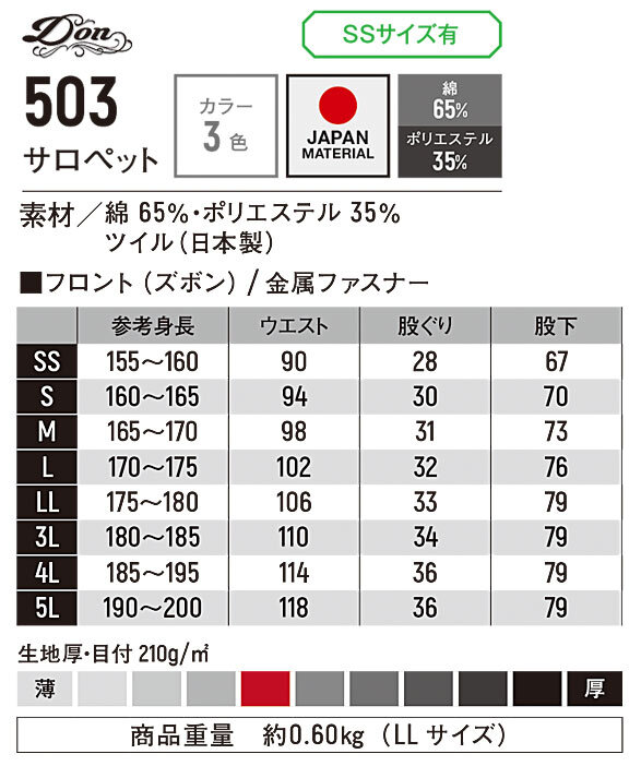 ご注文時「●ご意見・ご要望」欄に股下寸法、総丈をご記載下さい。