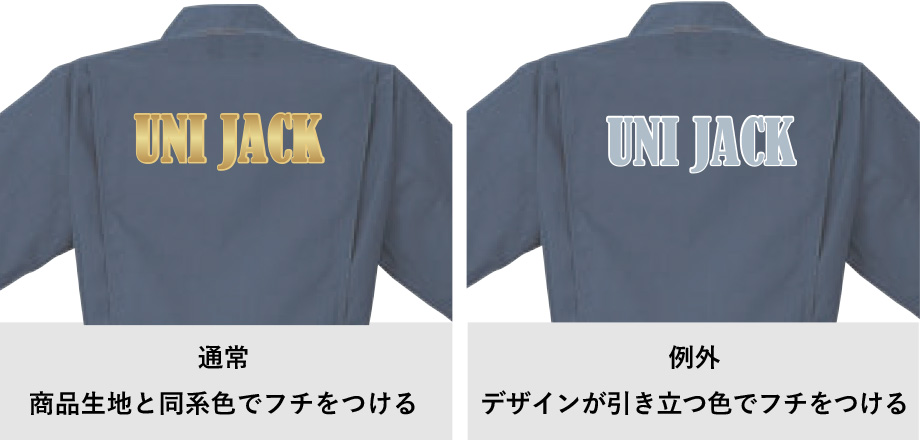 場合よってはデザインが引き立つ色にする(フチをつけてデザインを目立たせる)方法をとる場合がございます。